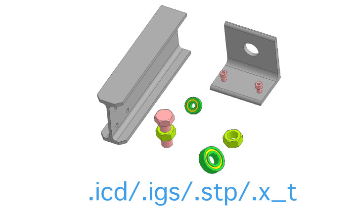 標準部品や頻繁に使用するユニット形状などをライブラリとして整備するための3Dモデリング化を、請負業務という形でサポートいたします。作成データは.icd/.igs/.stp いづれかの形式で納品可能です。